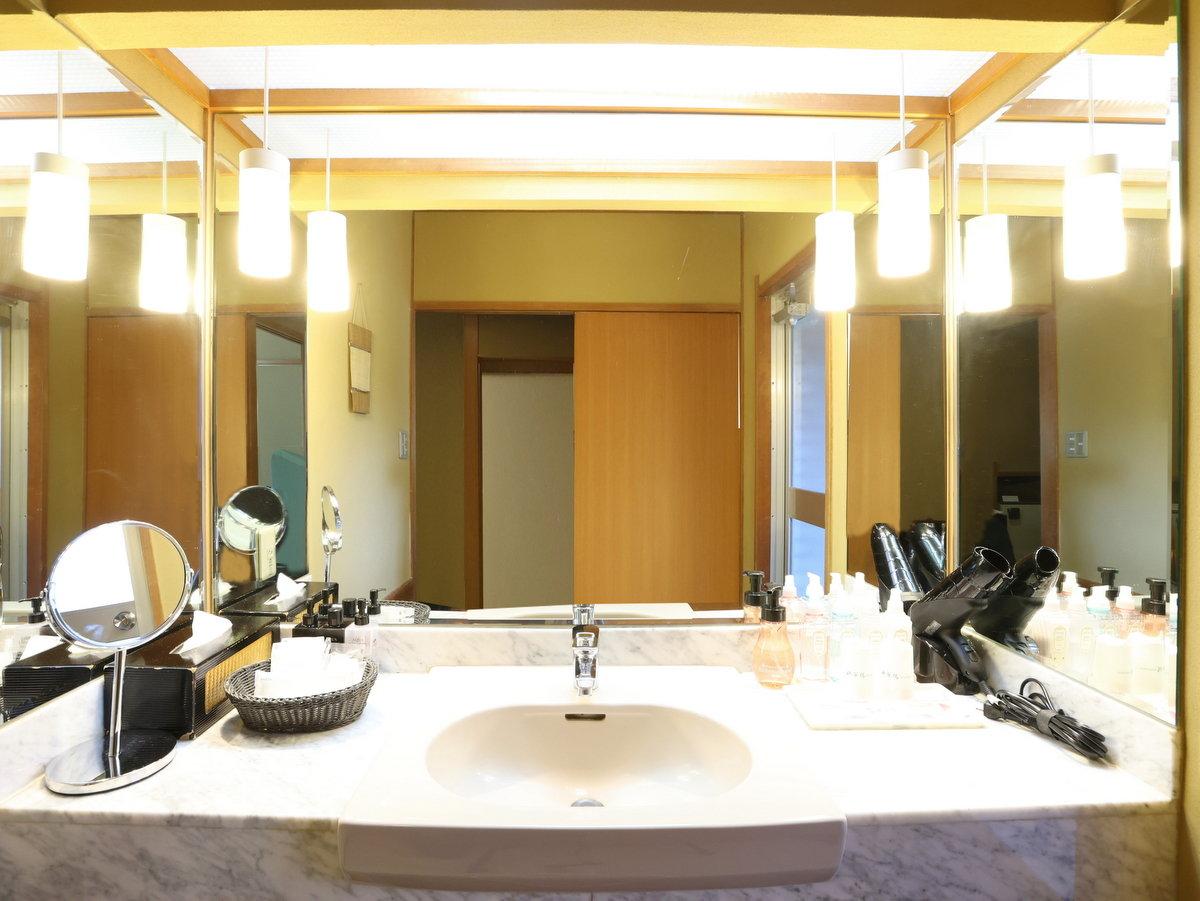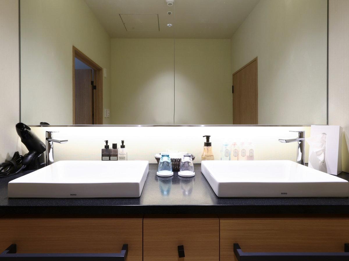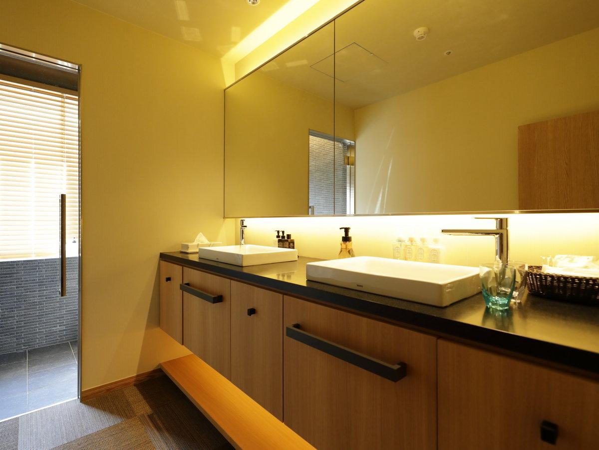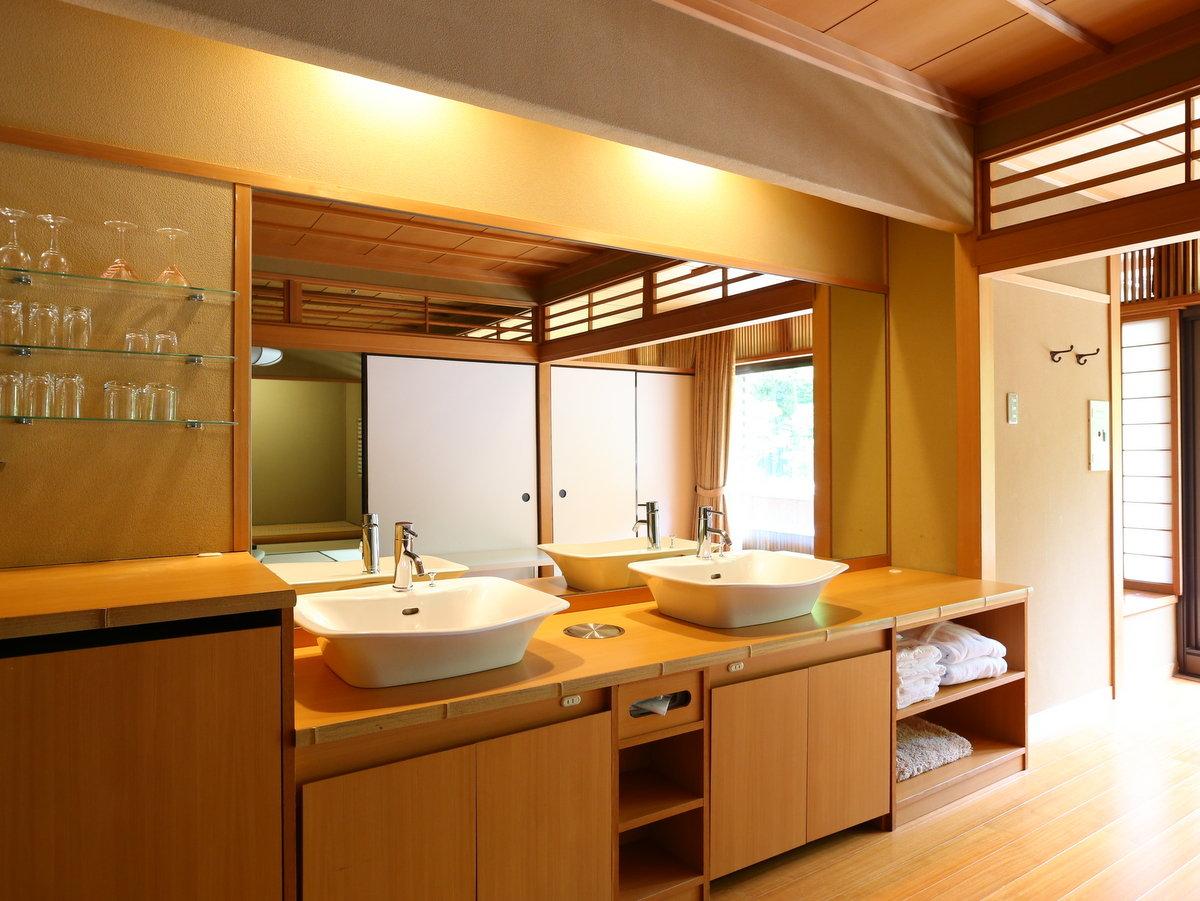 露天風呂付和洋室/130平米【桃山第】洗面台は2つ備えており...