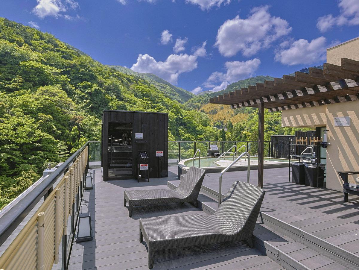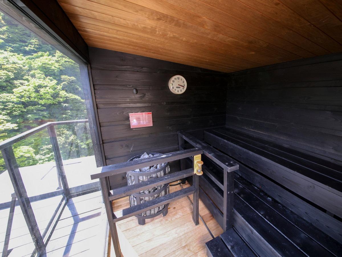 【サウナ】サウナからは奥湯河原の渓谷を眺めることができ、眺望...