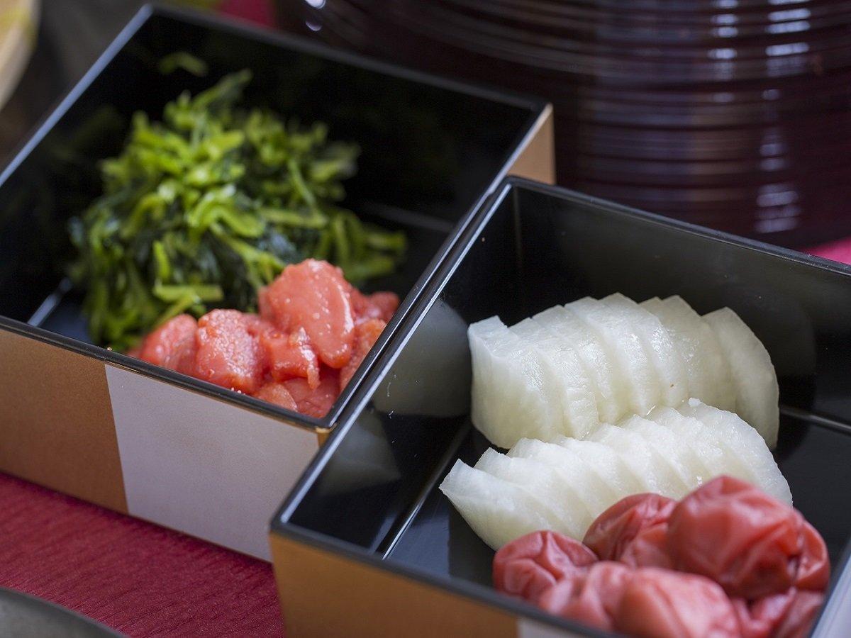 [朝食:通年]【朝食】紀州南高梅に壬生菜、金山寺わさび等を添...