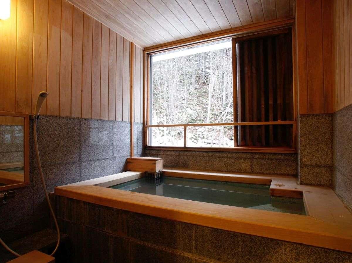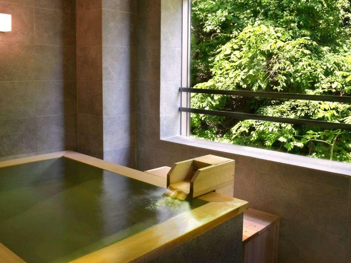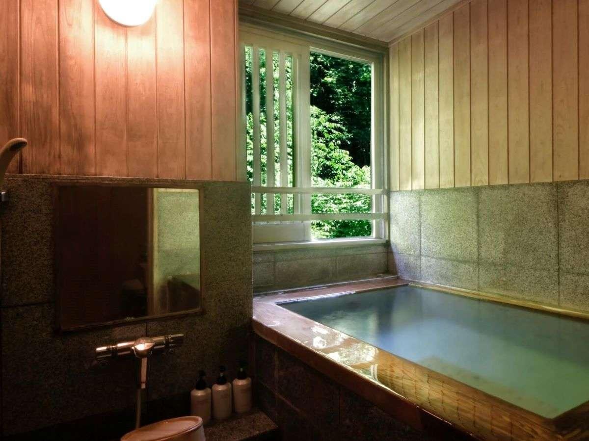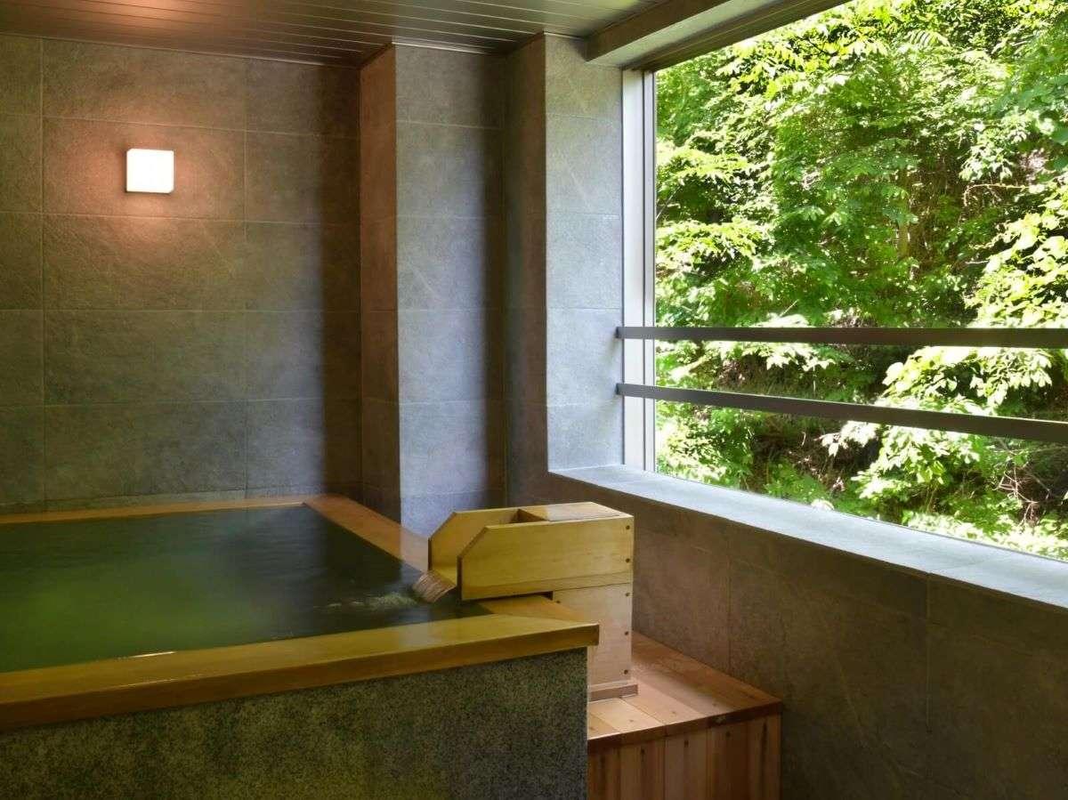 【離れの湯屋「森乃湯」】湯上がりに窓から四季折々の景観を眺め...