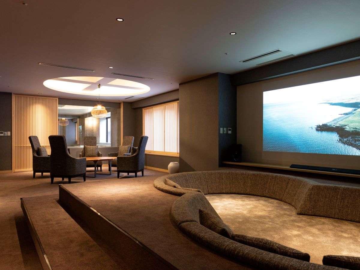 【山側の温泉&寝湯付客室「連珠」(160平米)】大画面で映画...