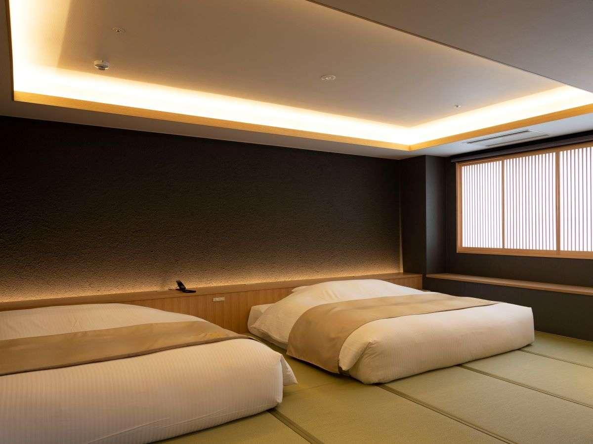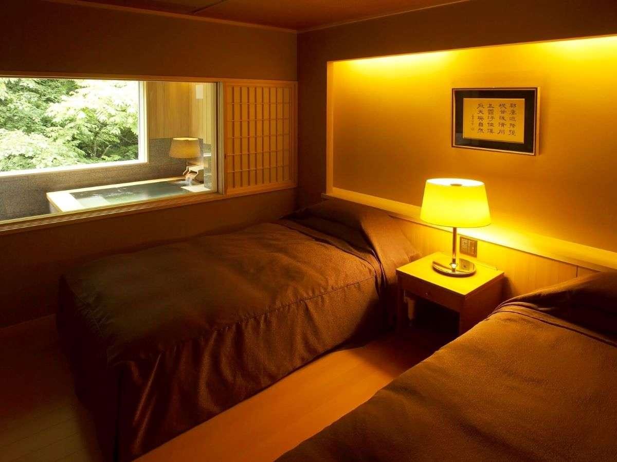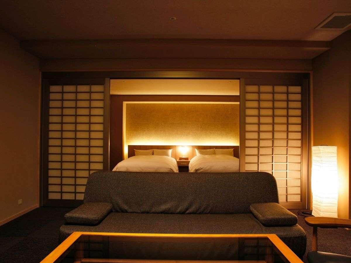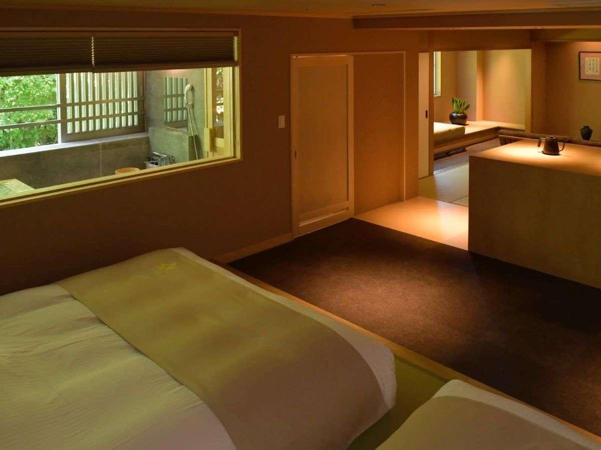 【街側の温泉&寝湯付客室「松風」(120平米)】ベッドルーム...
