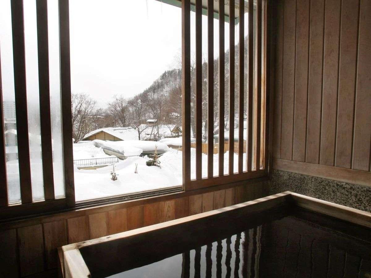 【離れの湯屋「森乃湯」】雪降る季節の景観も情緒たっぷり。