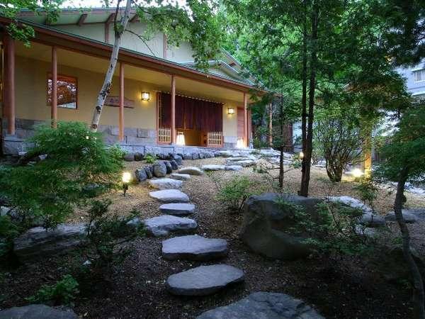 【離れの湯屋「森乃湯」】緑深い丘の上に佇む離れの湯屋です。