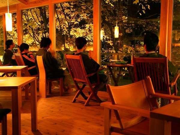 【離れの湯屋「森乃湯」】お休み処は落ち着いた照明とヒーリング...