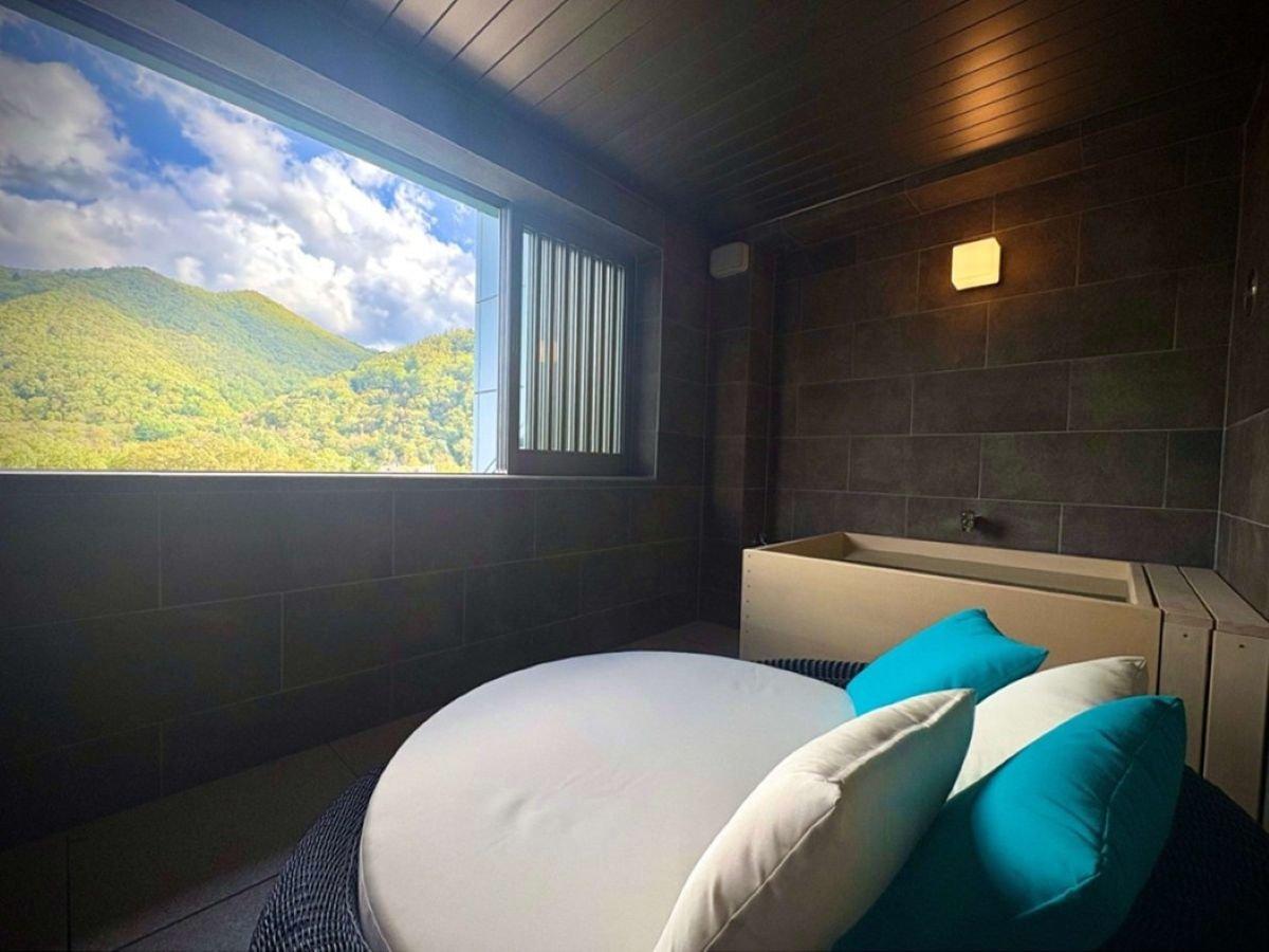 【サウナ&展望風呂付洋室(75平米)】窓を大きく開けて外気浴...
