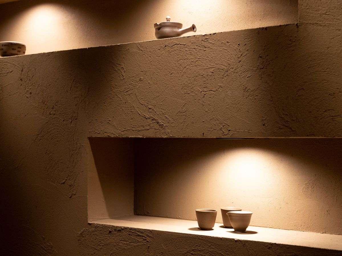 【お食事処「湯相七席」】器などをディスプレイの一つに。
