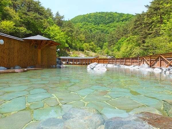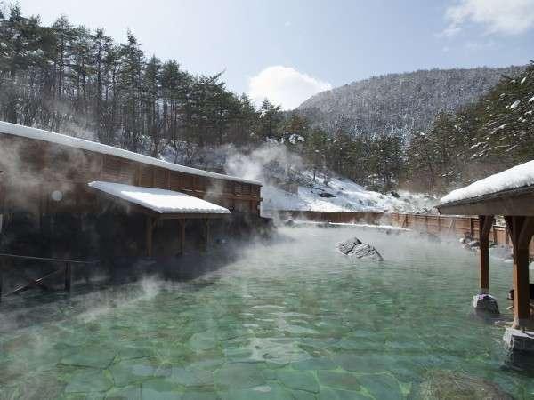 湯畑源泉が掛け流されている露天風呂「恵」(陶器浴槽)
