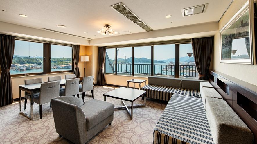「プレミア・クイーン・スイートルーム」ソファー(眺望)