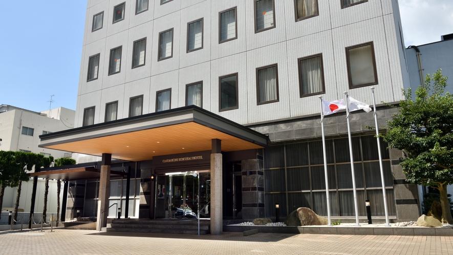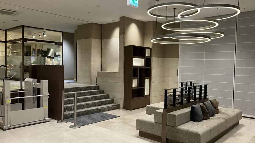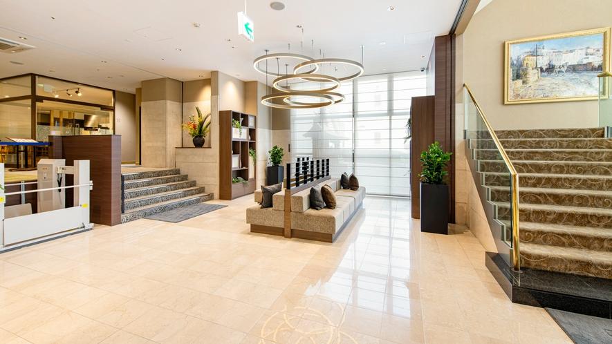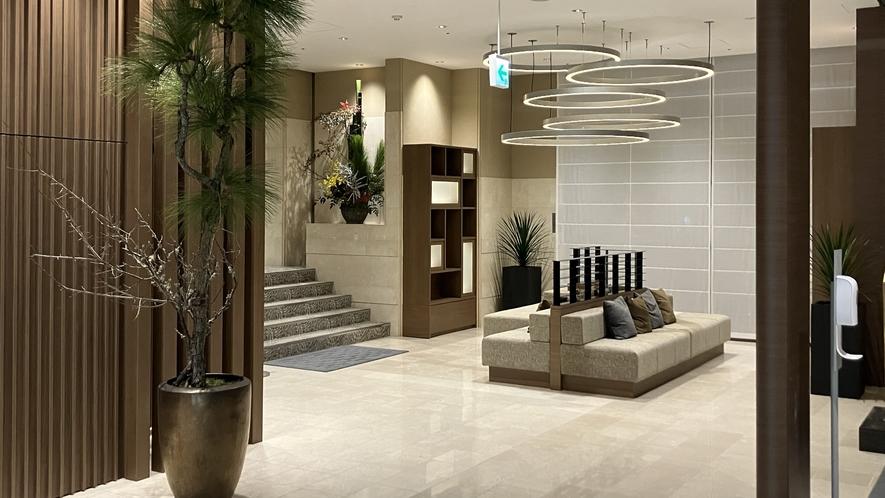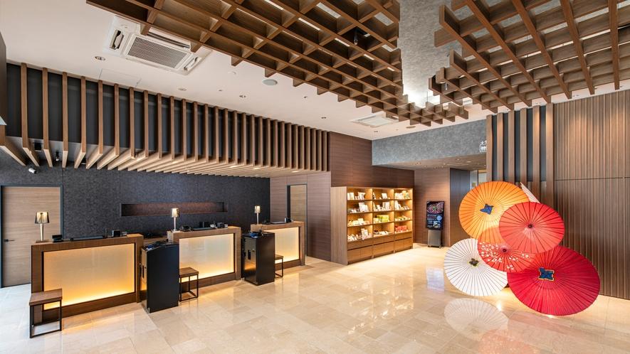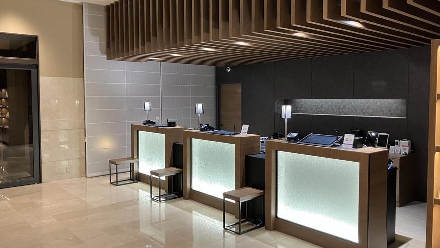 モダンな雰囲気のフロント。天井は尾道水道をイメージしたデザイ...