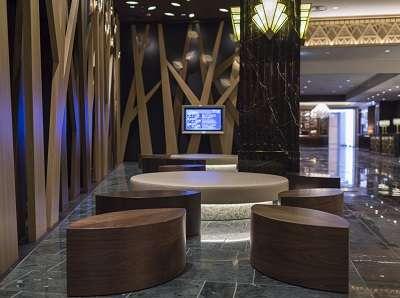 [ロビー]タイムズスクエアをイメージした広場には、金箔入りの...