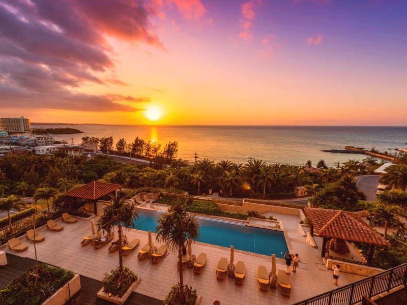 恩納村の高台に位置し、全室オーシャンビューの客室からは、