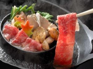【夕食グレードアップ】~希少な霜降りの「蔵王牛」を堪能する「すきしゃぶ鍋」コース~高見屋名物料理