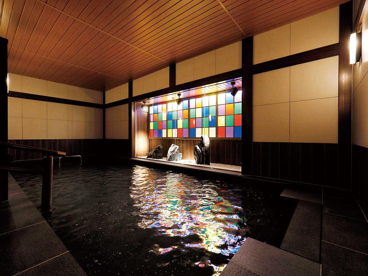 加賀友禅をモチーフにした女性浴場。坪庭を配した粋な設えの男性浴場。