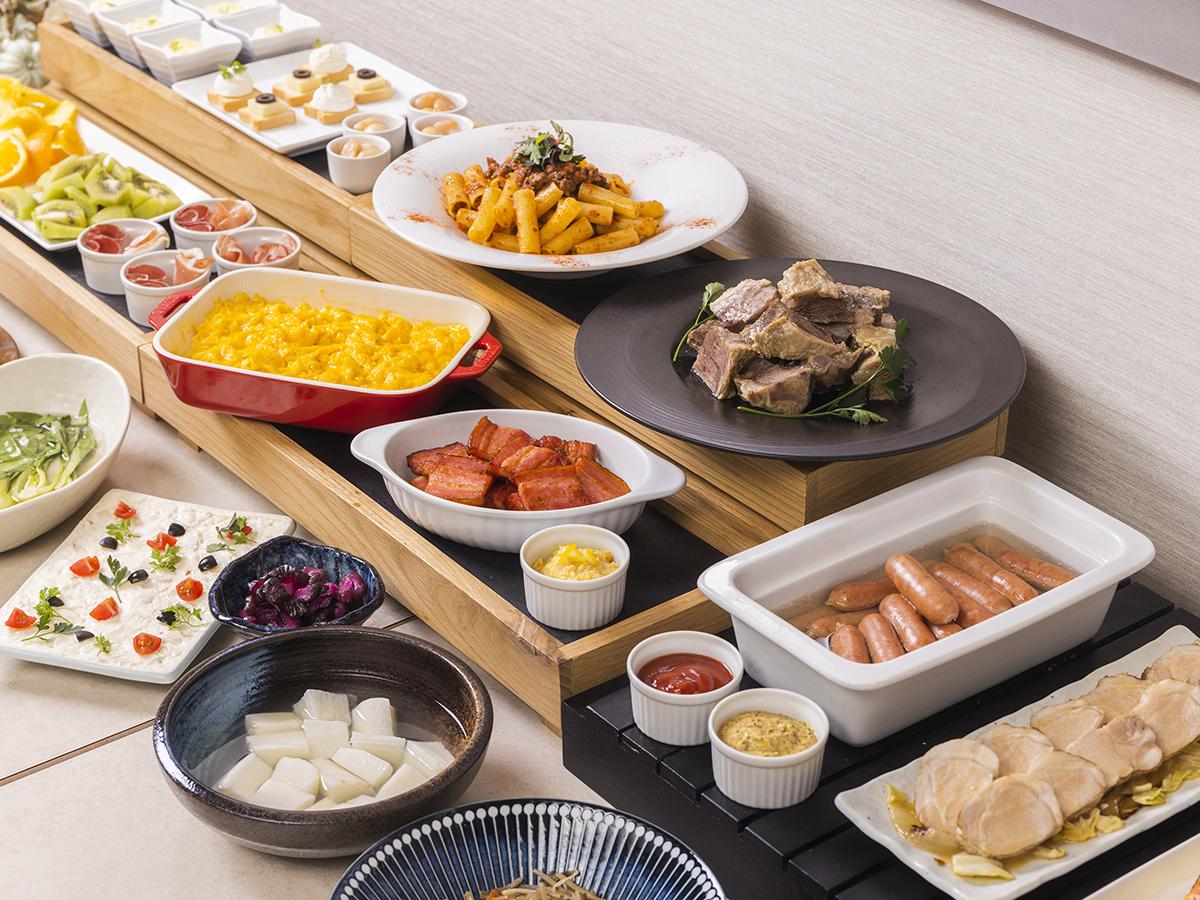 大きな窓に囲まれたレストラン「SAKURA」では、イタリアンをメインとした洋食と和食派にもうれしい白米に合うお惣菜などビュッフェ形式の朝食をご用意しています。